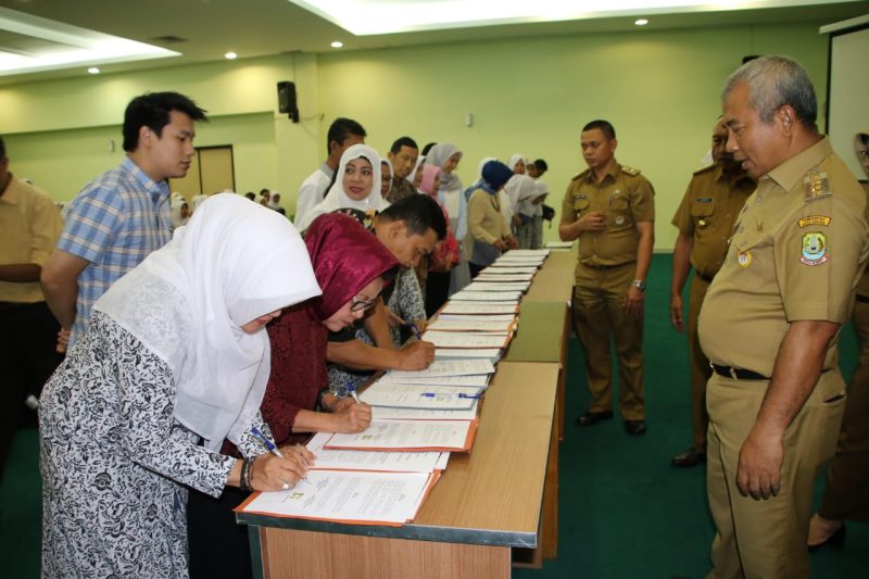 Wali Kota Bekasi, Rahmat Effendi menandatangani MoU Jaminan Kelahiran warga Kota Bekasi didampingi Kepala Dinas Kesehatan, Tanti Rohilawaty, Kepala BPKAD, Supandi Budiman, Asisten Daerah II, Kariman, Kepala Bagian Kerjasama, Hanan Tarya, dan Kepala Bagian Hukum, Wahyudin.