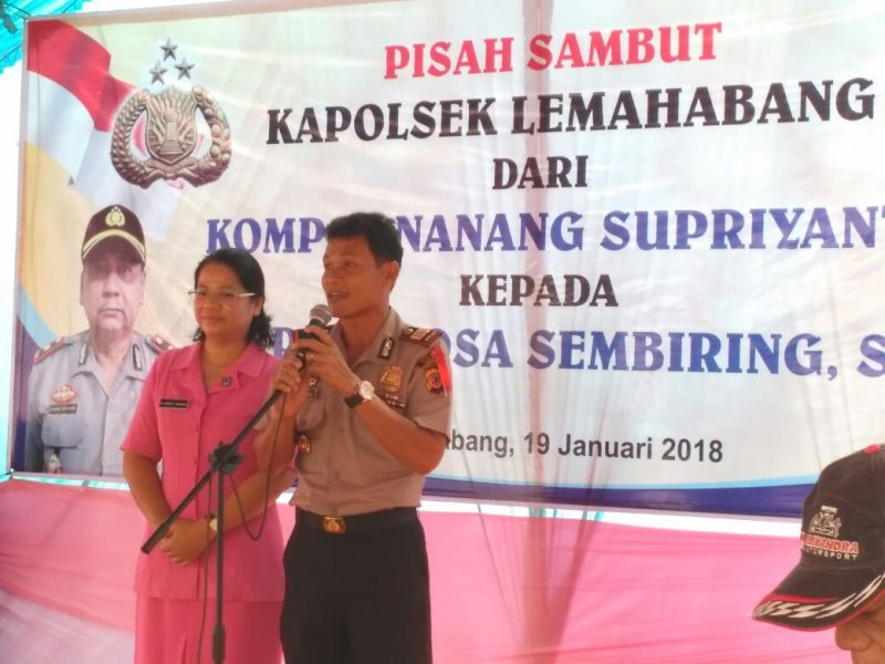 RakyatJabarNews.com, Cirebon – Polsek Lemahabang menggelar acara pisah sambut untuk Kapolsek lama dan baru, Jumat (19/1). Mutasi yang dilakukan oleh Polda Jabar ini menugaskan AKP Sentosa Sembiring untuk memegang tongkat komando di Polsek Lemahabang Kabupaten Cirebon. Sedangkan Kapolsek Lemahabang yang lama, Kompol Nanang Supriyanto mendapatkan tugas baru di Polres Indramayu. Acara pun berjalan lancar dan dihadiri oleh Muspika serta para Kuwu dan tokoh masyarakat.