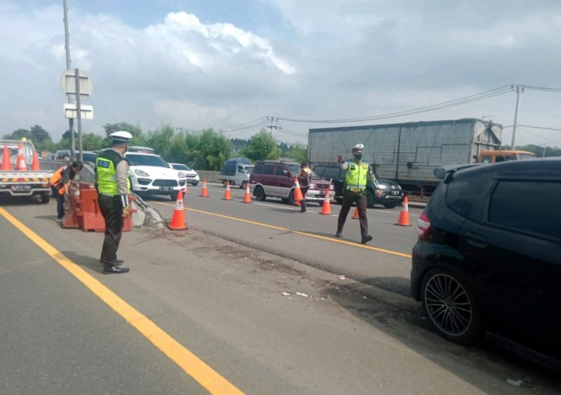 RJN, Cikampek – Untuk mengurai kepadatan di Jalan Tol Jakarta Cikampek (Japek) arah Jakarta, Jasa Marga berlakukan contraflow KM 61+000 sampai dengan KM 47+000 Jalan Tol Jakarta-Cikampek arah Jakarta sejak pukul 14.30 WIB.