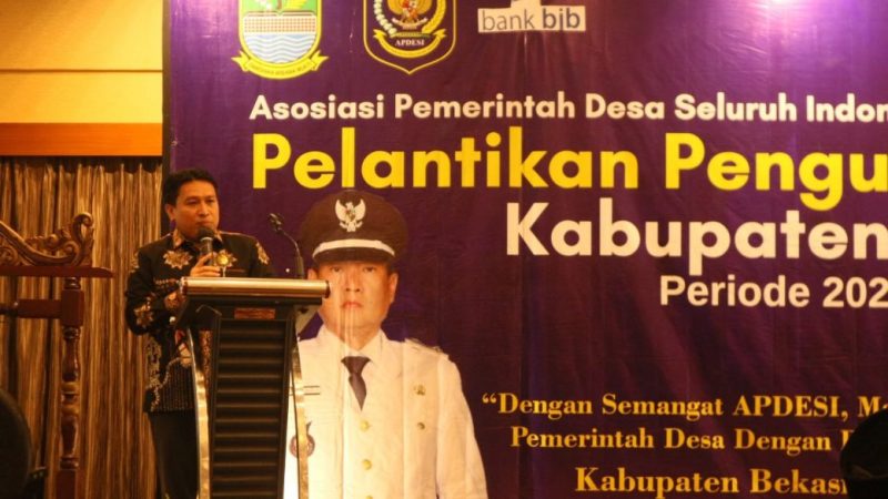 Pelantikan Apdesi Kabupaten Bekasi turut dihadiri Pelaksana Tugas (Plt) Bupati Bekasi Akhmad Marjuki dan sejumlah tokoh masyarakat.