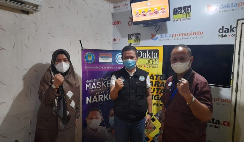 Giat tersebut, Badan Narkotika Kabupaten Bekasi menggelar melalui Talk Show siaran Radio Dakta dengan tema “Perang Melawan Narkotika (War On Drugs) di Era Pandemi Covid-19 Menuju Indonesia Bersih Narkoba” (BERSINAR). pada Jumat (25/6/2021).