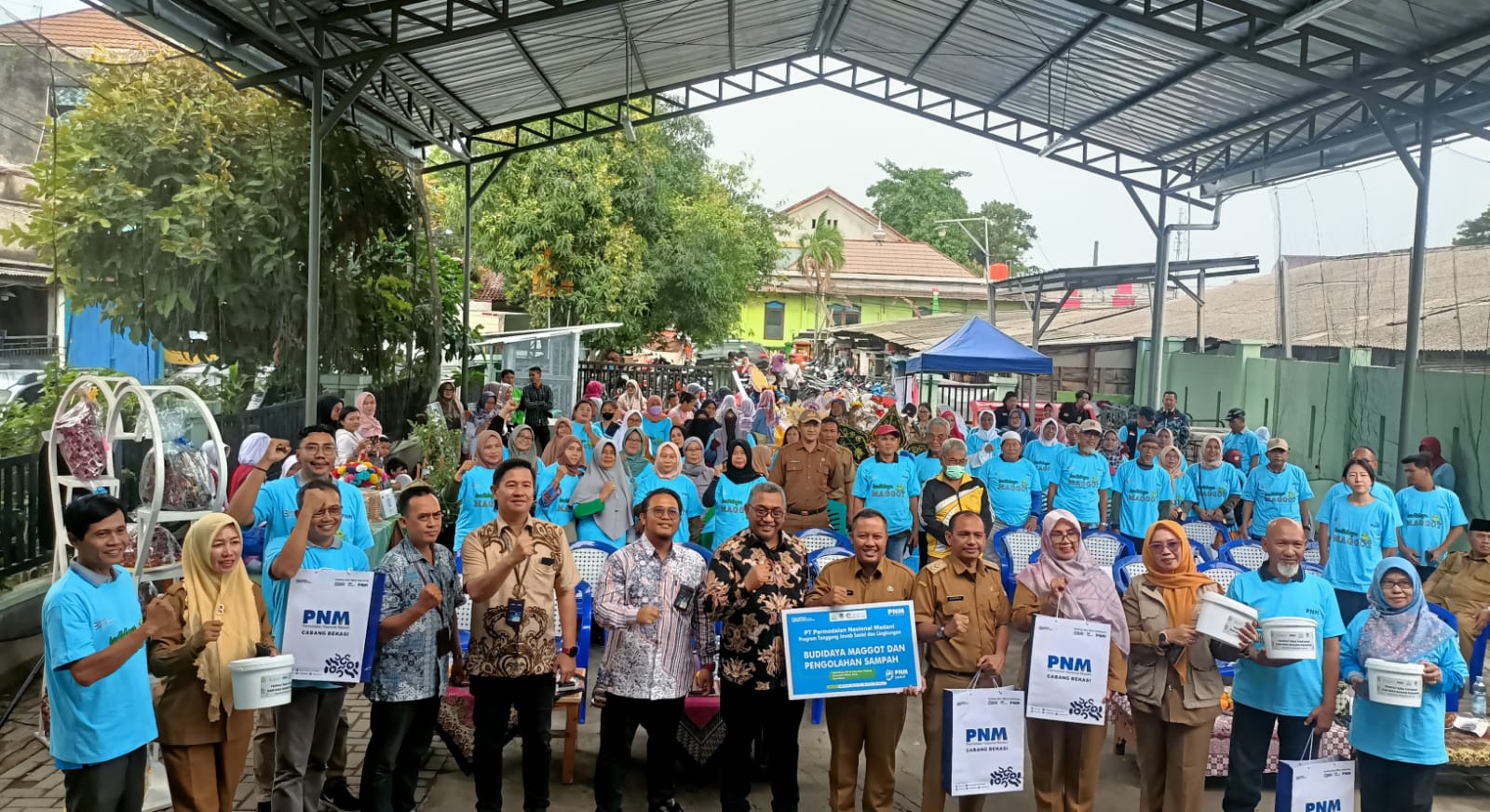 Permodalan Nasional Madani (PNM) Cabang Bekasi melalui Program Tanggung Jawab Sosial dan Lingkungan (PTJSL) berupa budidaya maggot dan pengolahan sampah di RW 06.