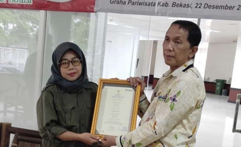 Bekasi – Dinas Pariwisata Kabupaten Bekasi menyerahkan 48 sertifikat Badan Nasional Sertifikasi Profesi (BNSP) kepada Tour Guide di Gedung Graha Pariwisata, pada Kamis (22/12/22).