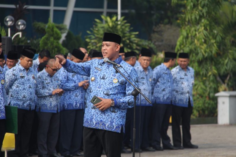 RJN, Bekasi – Wakil Wali Kota Bekasi, Dr. Tri Adhianto menjadi Inspektur Upacara di Plaza Pemerintah Kota Bekasi, Rabu (17/10) menggantikan Wali Kota Bekasi, Dr Rahmat Effendi yang sedang melakukan Program Kerja 100 hari di Kecamatan Rawalumbu dan Bekasi Timur.