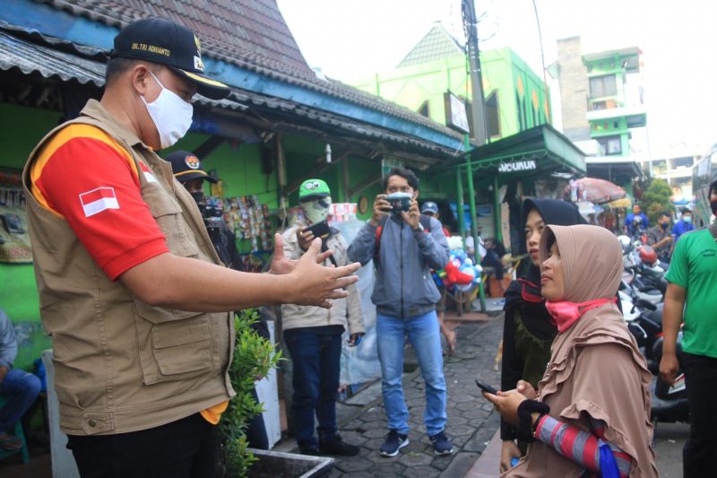 Selanjutnya, Mas Tri bersama Kapolres Metro Bekasi Kota dan Dandim 05/07 melakukan peninjauan kesejumlah area publik, yaitu Stasiun Bekasi, Pasar Baru dan Terminal Induk Bekasi. Terlihat juga Tri membagikan masker kepada warga yang belum menggunakan masker.