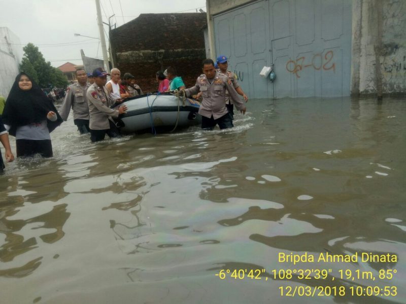 Dengan kejadian tersebut, Polair Polda Jabar membantu proses evakuasi warga yang terkena dampak banjir tersebut.