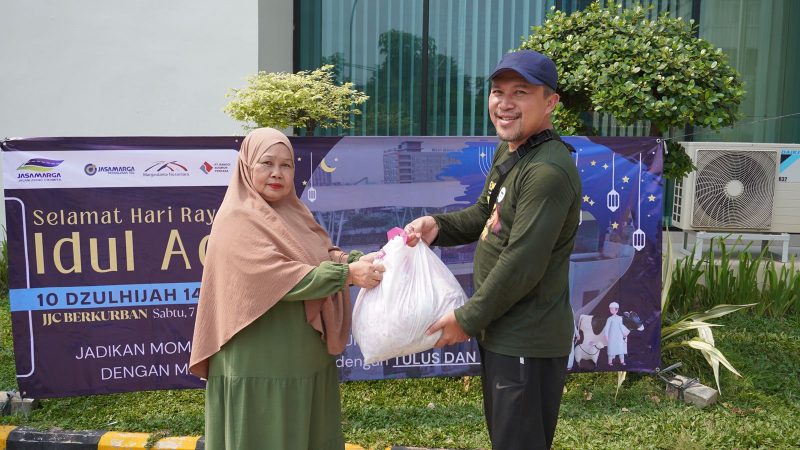 Bekasi – Menyambut Hari Raya Iduladha 1446 H, PT Jasamarga Jalanlayang Cikampek (PT JJC) menebar kebaikan dengan membagikan 200 kantong daging kurban kepada warga di sekitar kantor operasional Jalan Layang MBZ.