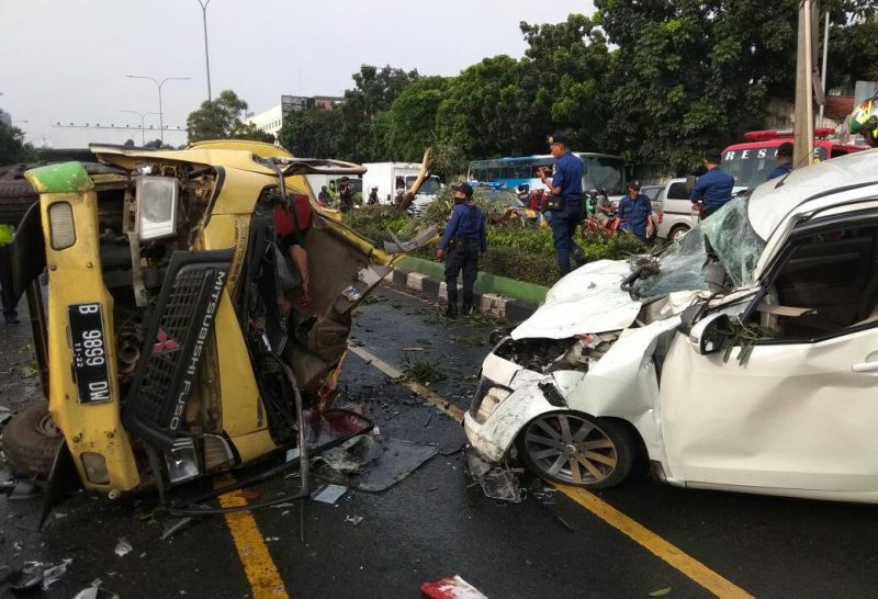 “Sementara informasi yang kita dapat, truk tangki air dari arah perempatan BCP Jalan Ahmad Yani ke arah Summorecon. Diduga sopir Ngantuk lalu menabrak pohon dan keluar kekanan masuk jalur berlawanan kemudian terjadi tabrakan,” terang dia.