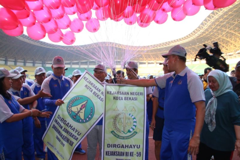 Pelepasan balon yang dibuat oleh Kejaksaan Negeri Kota Bekasi, dan di gunting oleh Wali Kota, Wakil Wali Kota Bekasi, Kapolres Metro Bekasi, Dandim 0507 Bekasi serta Kepala Kejaksaan Negeri Kota Bekasi menandakan resminya Pekan Olahraga dalam HUT Adhyaksa ke 59 Tahun 2019.