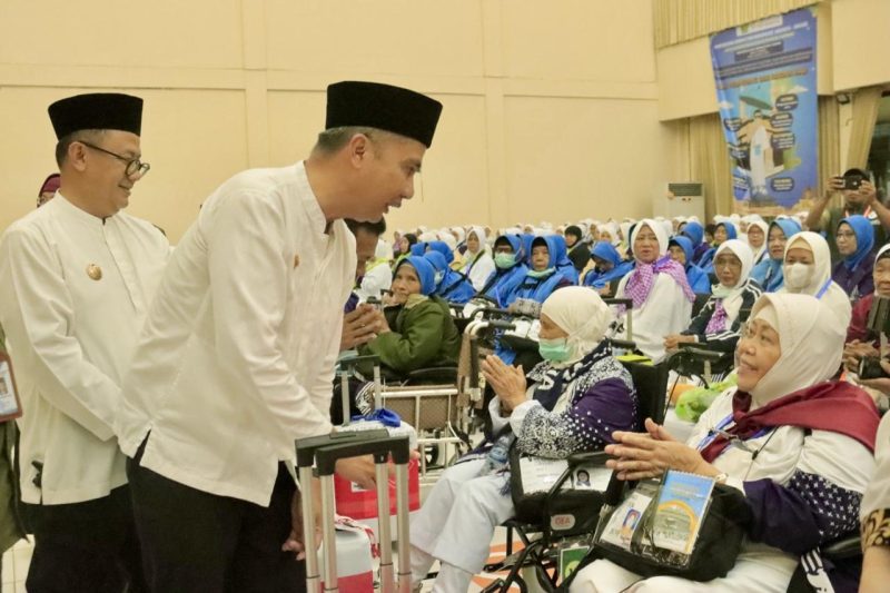 Bekasi – Pj. Gubernur Jawa Barat, Bey Machmudin bersama Pj. Wali Kota Bekasi, Gani Muhamad melepas keberangkatan Kloter Pertama Jamaah Haji Asal Jawa Barat dari Asrama Haji Kota Bekasi menuju Bandara, Pada Sabtu (11/05/2024) malam.