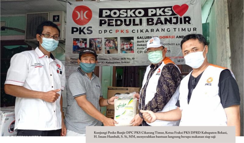 “Menyerahkan bantuan kebutuhan makanan untuk korban banjir di Posko Cikarang Timur, dan mengecek persiapan pengiriman 1,000 bungkus nasi dan lauk hari ini untuk beberapa titik termasuk di desa Labansari, ” papar Imam Hambali yang juga sebagai Ketua DPD PKS Kabupaten Bekasi.