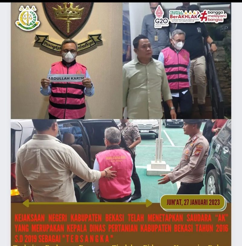 “Kejaksaan Negeri Kabupaten Bekasi telah menetapkan saudara AK yang merupakan Kepala Dinas Pertanian Kabupaten Bekasi tahun 2016 – 2019 sebagai tersangka dalam perkara ini,” kata Siwi, Jum’at (27/01).