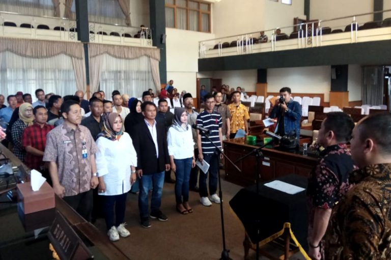 “Pelantikan masih dipimpin ketua dewan terdahulu, sebelum anggota dewan baru dilantik. Prosesi ini diawali dengan pembukaan oleh ketua dewan, lalu pembacaan SK Gubernur Jawa Barat terkait dua hal yaitu pemberhentian anggota dewan lama dan pengangkatan anggota dewan yang baru,” ungkapnya.