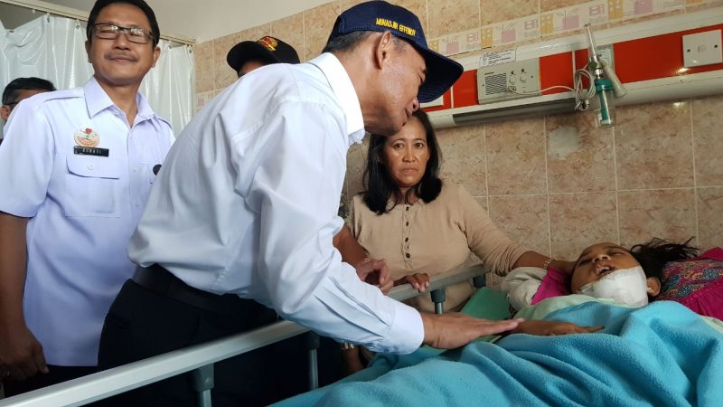 RakyatJabarNews.com, Cirebon – Menteri Pendidikan dan Kebudayaan (Mendikbud) Muhadjir Effendy menjenguk Intan (13), salah satu korban selamat dalam tragedi ambruknya sanggar seni di Kecamatan Gegesik Kabupaten Cirebon hari Minggu (15/4) lalu, di Rumah Sakit Gunung Jati Kota Cirebon, Rabu (18/4), dengan didampingi oleh Dirut Rumah Sakit Gunung Jati Dr. Bunadi.