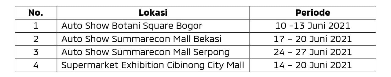 Pada ajang tersebut, PT MMKSI memberikan penawaran menarik bagi konsumen yang melakukan SPK pada event ini, dengan program penjualan Juni 2021 dan juga suvenir khusus SPK di tempat selama periode pameran. Konsumen juga tidak perlu khawatir karena PT MMKSI menjamin semua proses dalam setiap event yang dilaksanakan mematuhi protokol kesehatan yang dianjurkan oleh pemerintah untuk mencegah penyebaran Covid-19.