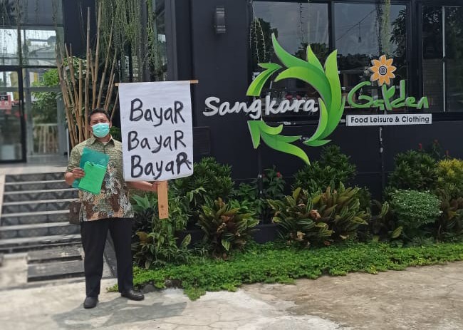 rakyatjabarnews.com, Bogor – Seorang pengusaha supplier, Natanel Sakti Purba (38), berunjuk rasa seorang diri di gerbang masuk Restoran Sangkara Garden, Jalan Ciherang Bong No. 32, Desa Cikeas, Kecamatan Sukaraja, Kabupaten Bogor. Ia sengaja membentangkan sejumlah poster, karena kesal telah ditipu Owner Sangkara Garden, Putu Bayu Suastika.