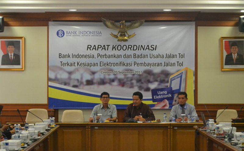 RakyatJabarNews.com, Cirebon – Mulai 31 Oktober 2017, pembayaran di jalan tol Indonesia akan dilakukan sepenuhnya secara non tunai atau e-money. Pemberlakuan ini diharapkan dapat mempercepat proses pembayaran di gerbang tol. Hal tersebut diungkapkan oleh M. Abdul Majid selaku Kepala Bank Indonesia Cabang Cirebon saat mengadakan Rapat Koordinasi di Ruang Rapat Linggarjati Bank Indonesia cabang Cirebon hari Rabu (20/9).