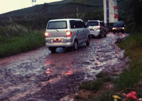 Banyak kendaraan yang terselip karena jalur yang berlumpur dan harus dibantu warga untuk dapat keluar. Hujan yang  turun setiap hari membuat kondisi jalan semakin parah.