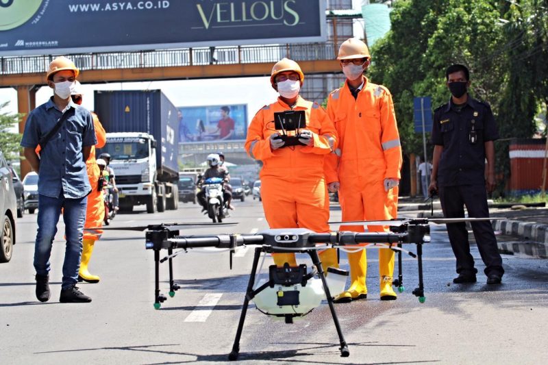 “Ini pertama kita berkolaborasi dengan komunitas drone dari dibantu dengan mobil water canon dari polres,” tutur Wakil Walikota Bekasi, Tri Adhianto