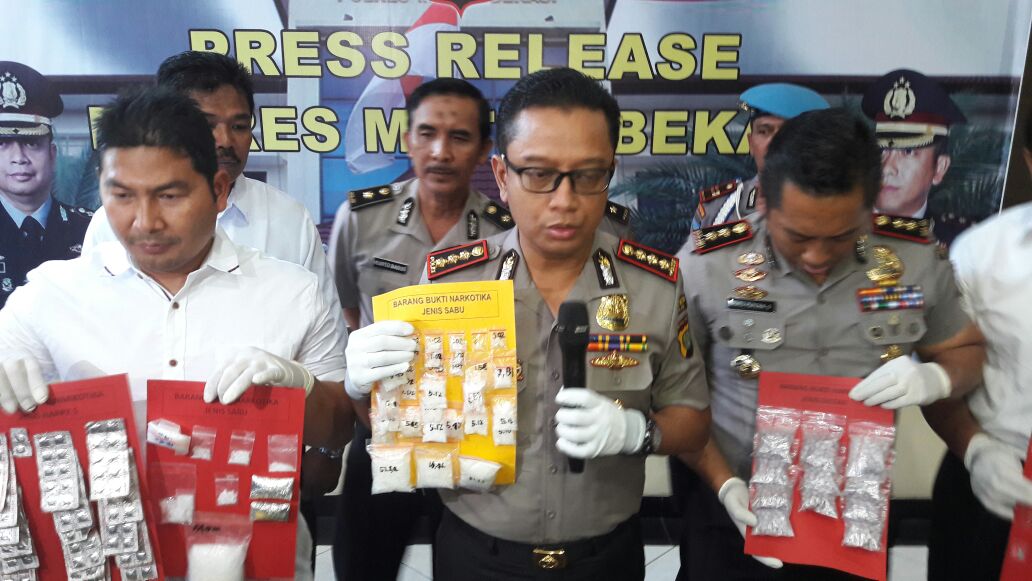RakyatJabarNews.com, Bekasi – Polres Metro Bekasi berhasil mengungkap kasus peredaran gelap dan penyalahgunaan narkotika jaringan Bekasi, Jakarta, dan Bangka Belitung saat Rabu 26/7/2017).