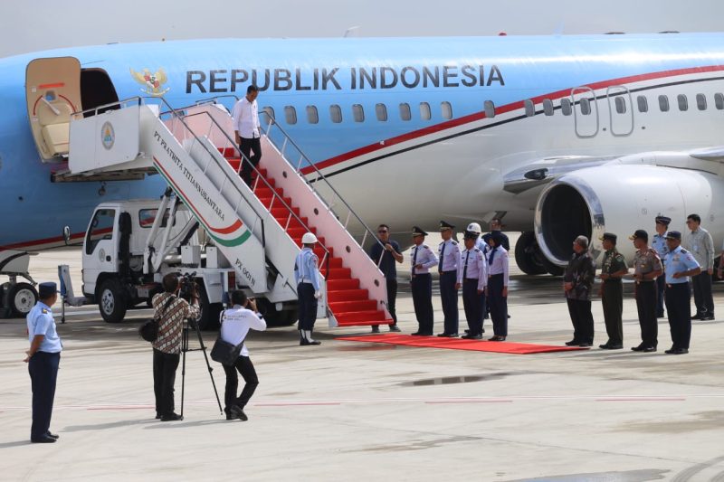 Pesawat kepresidenan yang membawa Presiden Joko Widodo dan rombongan untuk melakukan kunjungan kerja selama dua hari mendarat di BIJB sekitar pukul 09.19 WIB. Saat ketibaan di apron, pesawat kepresidenan disambut dengan seremoni water salute.