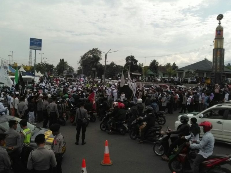 Protes Pernyataan Sukmawati Soekarno, Ribuan umat muslim Cianjur Duduki Tugu Lampu Gentur