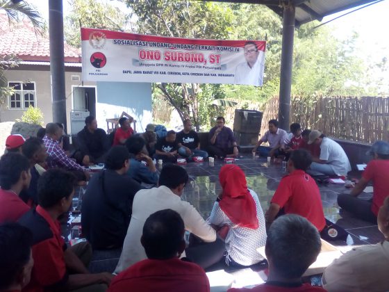 RakyatJabarNews.com, Indramayu – Sejumlah pengurus Rumah Aspirasi Ono Surono (RAOS) di kabupaten Indramayu hadiri kegiatan sosialisasi undang-undang terkait komisi IV sekaligus penyampaian Undang-undang Pemilu oleh anggota DPR RI Fraksi PDI Perjuangan Ono Surono ST, di Desa Sindangkerta Kecamatan Lohbener Kabupaten Indramayu, Minggu (30/07).
