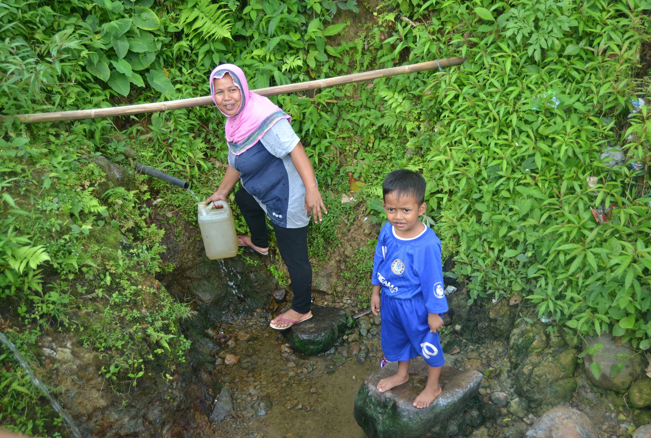 Untuk buang air atau mandi, Yuliana dan keluarganya harus menuruni tebing di belakang rumahnya. Letaknya pun di dekat sawah. Hanya saja, lokasinya tidak begitu jauh dengan lokasi yang pertama. Namun tetap saja, medannya cukup sulit, apalagi jika di malam hari.