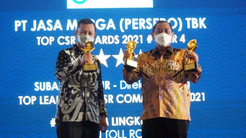 rakyatjabarnews.com, Jakarta – Rangkaian program Tanggung Jawab Sosial dan Lingkungan (TJSL) yang digagas PT Jasa Marga (Persero) Tbk berhasil meraih tiga penghargaan dalam ajang TOP CSR Awards 2021 yang diselenggarakan oleh TopBusiness. Ketiga penghargaan tersebut adalah TOP CSR Awards # Star 4, TOP Leader on CSR Commitment yang diraih oleh Direktur Utama Jasa Marga Subakti Syukur serta Special Category: Program Lingkungan-Green Toll Road.