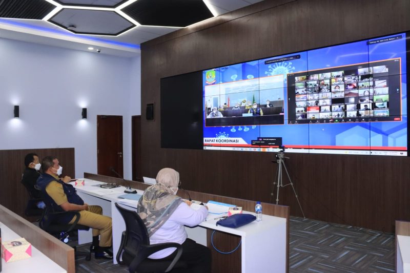 Bekasi – Bertempat di Command Center Kota Bekasi pada pukul 19.30 WIB, Pelaksana Tugas (Plt.) Wali Kota Bekasi, Tri Adhianto bersama Sekretaris Daerah Kota Bekasi, Reny Hendrawaty adakan Zoom Meeting bersama Rapat Koordinasi para Ketua Rukun Wilayah (RW) se Kota Bekasi, Senin (7/02/2022).
