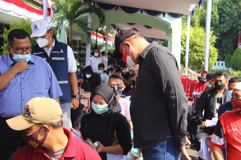 rakyatjabarnews.com, Bekasi – Wakil Wali Kota Bekasi Dr. Tri Adhianto tinjau beberapa lokasi vaksinasi yang ada di Kota Bekasi, diantaranya Ruko Centra Niaga, Kantor Perusahan Umum Jasa Tirta (PJT), PCNU sepanjang jaya, Perum Narogong dan Yayasan Lembaga Dakwah Islam Indonesia, Sabtu (14/08/2021).