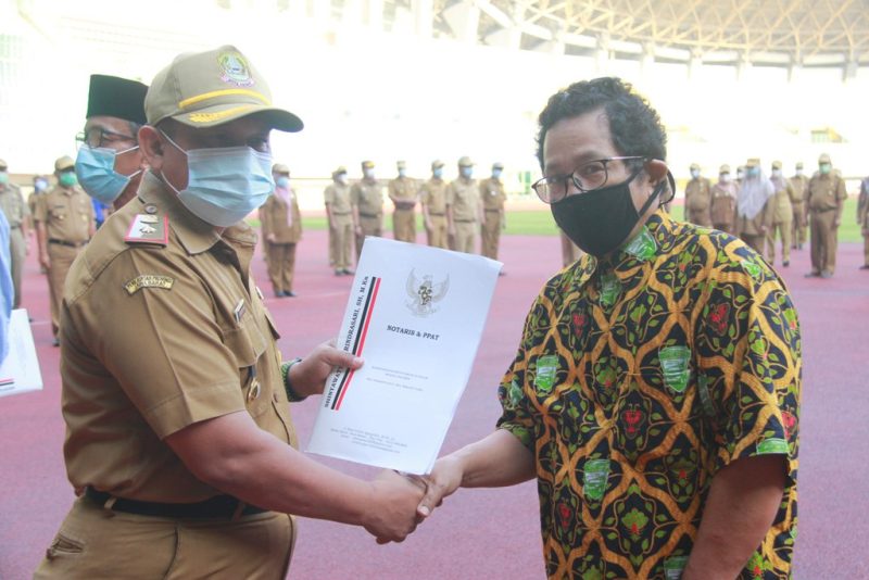 RJN, Bekasi – Wakil Wali Kota Bekasi DR. Tri Adhianto pimpin apel pagi, senin (25/01/2021), yang dirangkai dengan penyerahan beberapa piagam penghargaan di Stadion Patriot Chandrabaga.