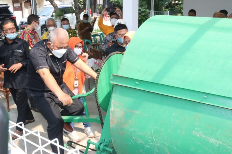 Wali Kota sempat menjajal mesin Rotary Kiln manual, yakni mesin pembuat pupuk kompos, dan melihat mesin pencacah plastik daur ulang ramah lingkungan.