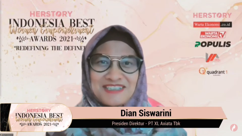 Keenam penghargaan yang dimaksud adalah “Best Women Empowerment Initiative with Oustanding Female Leadership” untuk Presiden Direktur & CEO XL Axiata, Dian Siswarini, dari ajang Indonesia Best Women Empowerment Awards 2021 ‘Redefining the Defined’, yang diselenggarakan oleh HerStory Indonesia dan Warta Ekonomi sebagai apresiasi untuk perusahaan-perusahaan yang telah mendukung kesetaraan gender dan pemberdayaan perempuan.